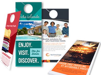 Door hangers are a simple, easy and affordable option to reach your business customers. Door knob hangers, custom cut hangers, campaign, political and religious hangers are all very effective tried and true print products. Hangers are some of the most effective print products because they are the first thing your customer sees when getting home!